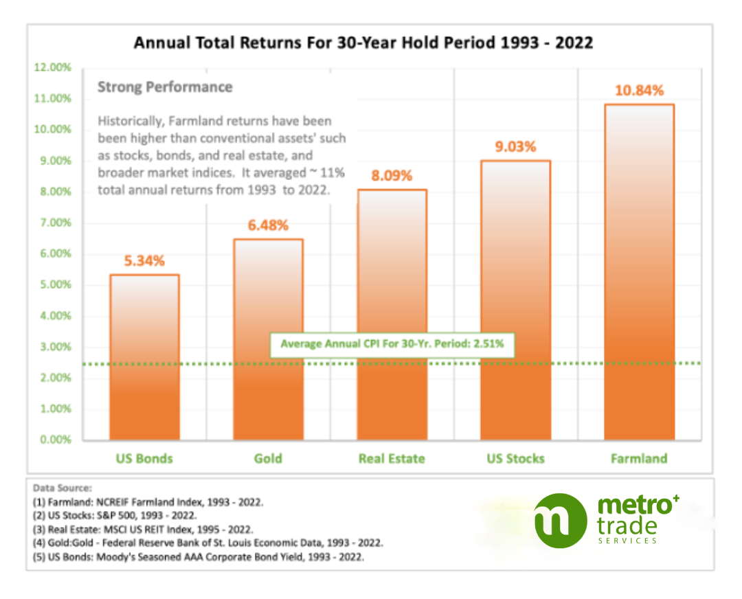 Metro Tader Services provides access to investments with little to no correlation to the overall stock market that produce solid returns compared to other asset classes. The platform allows qualified investors to choose from a variety of carefully screened and selected private agriculture investments. Many of these investments feature sustainable or organic production methods.